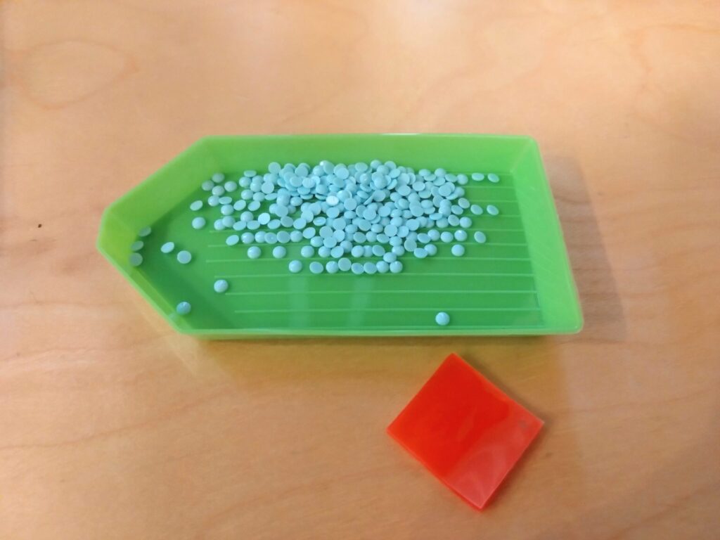 ①シート番号と同じ番号の袋からビーズを取り出し、トレーに入れます。